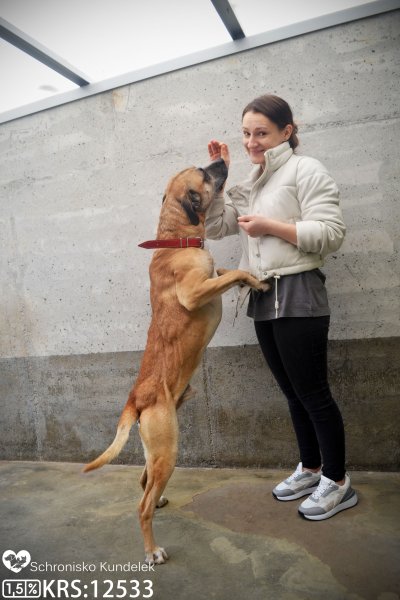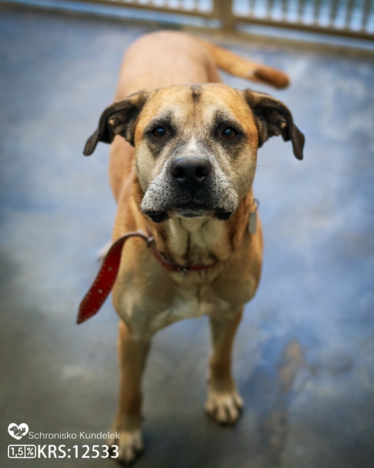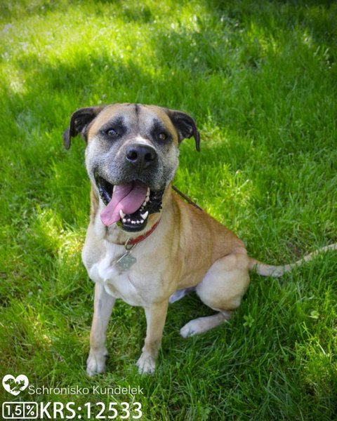 Tales trafił do schroniska w roku 2023, mając ok. 2 lata. Jest to duży, przyjazny, energiczny pies. Zna podstawowe komendy.